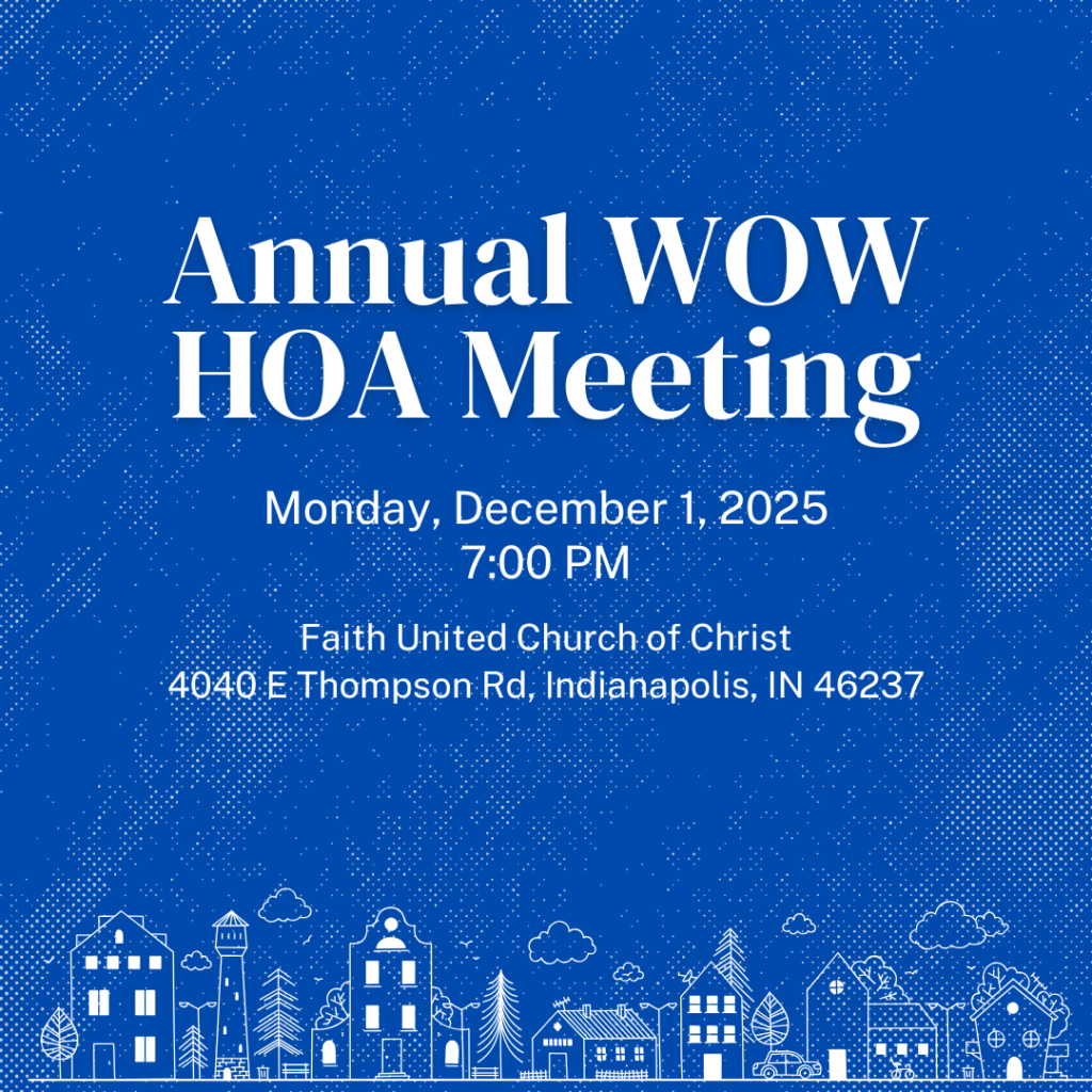 Join us for our annual meeting in December 1, 2025 at 7:00 PM at Faith United Church of Christ located at 4040 E Thompson Road, Indianapolis, IN 46237. Doors open at 6:30 PM.
